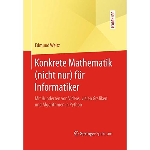 Buchrückseite Das etwas andere Mathe-Lehrbuch: Mathematik, die Informatiker (und nicht nur die!) wirklich brauchen, und die direkt am Computer umgesetzt wird in Form von kleinen Algorithmen, numerischen "Experimenten" und interaktiven Visualisierungen. Man lernt, wie man dem Computer das Rechnen überlässt, während man selbst den mathematischen Überblick behält, typische Fehler vermeidet und die Ergebnisse richtig interpretiert. (Und nebenbei lernt man noch die beliebte Programmiersprache Python sowie den Umgang mit einem Computeralgebrasystem.) Gleichzeitig wird die Mathematik aber nicht zur "Hilfswissenschaft" degradiert. Der Autor motiviert und begründet im "Plauderton" und mit konkreten Beispielen und Knobelaufgaben (und manchmal auch mit kleinen philosophischen und historischen Exkursen), um so den Leser zum Mitmachen und Mitdenken aufzufordern. Im Idealfall hat man am Ende nicht nur etwas gelernt, sondern verspürt Lust auf mehr - und sieht die Mathematik danach vielleicht mit anderen Augen.Mit informatik-spezifischen Anwendungen unter anderem aus der Kryptographie, der Kodierungs- und Komplexitätstheorie sowie der Computergrafik. Unterstützt durch viele farbige Grafiken, etwa 1000 Aufgaben mit Lösungen und nicht zuletzt Hunderte von Videos, in denen man sich das Gelesene vom Autor noch mal "persönlich" erklären lassen kann.Der Autor Prof. Dr. Edmund Weitz, Diplom und Promotion in Mathematik (Universität Hannover), langjährige Praxiserfahrung, ist Professor für Mathematik und Informatik an der Hochschule für Angewandte Wissenschaften Hamburg. 2015 erhielt er den Hamburger Lehrpreis, der für herausragende und innovative Lehrleistungen an den Hamburger Hochschulen verliehen wird. Über den Autor und weitere Mitwirkende Prof. Dr. Edmund Weitz, Diplom und Promotion in Mathematik (Universität Hannover), langjährige Praxiserfahrung, ist Professor für Mathematik und Informatik an der Hochschule für Angewandte Wissenschaften Hamburg. 2015 erhielt er den Hamburger Lehrpreis, der für herausragende und innovative Lehrleistungen an den Hamburger Hochschulen verliehen wird.Gebundene Ausgabe=942 Seiten. Verlag=Springer Spektrum; Auflage: 1. Aufl. 2018 (10. August 2018). Sprache=Deutsch. ISBN-10=365821564X. ISBN-13=978-3658215644. Größe und/oder Gewicht=16,8 x 24 cm. Durchschnittliche Kundenbewertung=Schreiben Sie die erste Bewertung. Amazon Bestseller-RangDiskrete MathematikStochastische ProzesseZahlen=Nr. 447.861 in Bücher (Siehe Top 100 in Bücher) .zg_hrsr { margin: 0; padding: 0; list-style-type: none; } .zg_hrsr_item { margin: 0 0 0 10px; } .zg_hrsr_rank { display: inline-block; width: 80px; text-align: right; } Nr. 38 in Bücher > Fachbücher > Informatik > Mathematik > Nr. 47 in Bücher > Fachbücher > Mathematik > Stochastik > Nr. 85 in Bücher > Fachbücher > Mathematik > Grundlagen >.